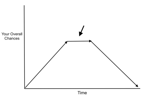 Initially you’ll notice that your chances are pretty low but as time goes on and as you start doing the right things which is often overlooked you’ll notice that your chances inevitably will plateau.