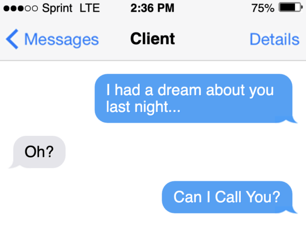 We sent him a text that would make him so intrigued that he would have no choice, but to want to get on the phone.